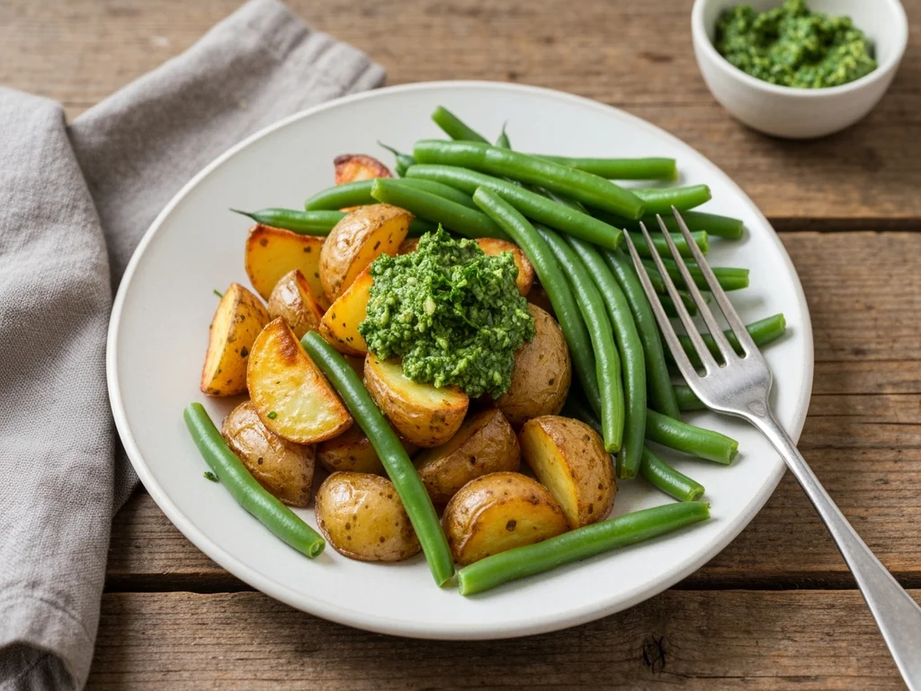 Ziemniaki i fasolka szparagowa z pesto pietruszkowym