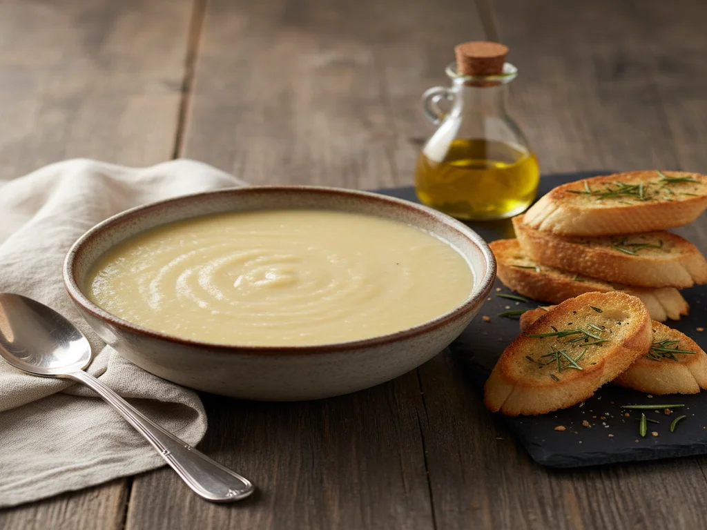 Zupa krem (bisque) z przegrzebkami, crostini z rozmarynem i cytrynową oliwą