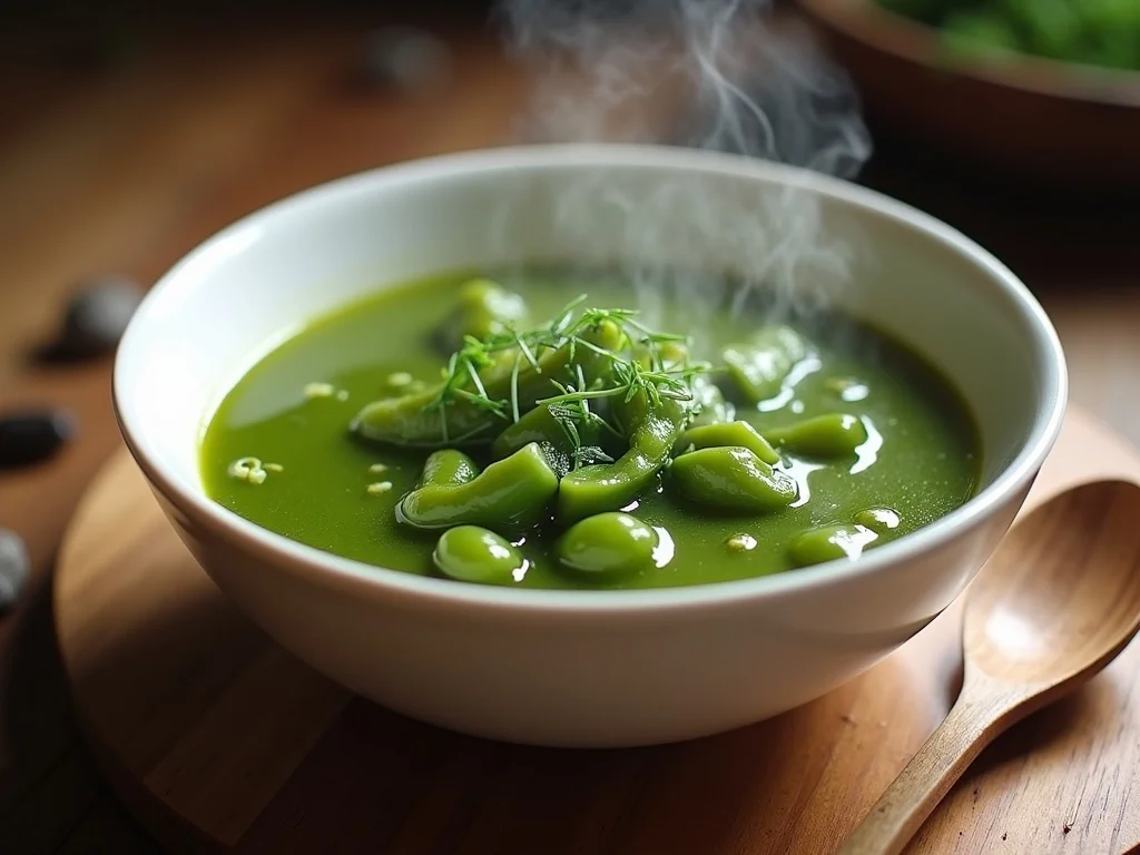 - Dodać wodę, koncentrat bulionu warzywnego, majeranek, ostrą paprykę, chili i sól, gotować25 min/100°C//obr. 1. Doprawić do smaku solą i pieprzem. Zupę z zielonej soczewicy i papryki podawać na ciepło udekorowaną natką pietruszki i pokrojoną w ósemki cytryną.