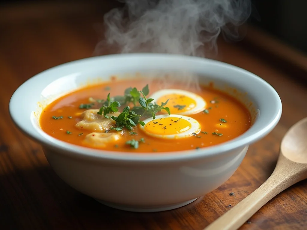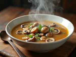 Zupa ziemniaczana z jajkami i rumienionymi pieczarkami