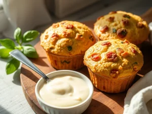 Muffiny cukiniowo-pomidorowe z kremowym sosem serowym