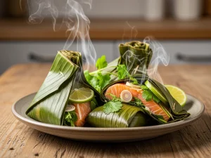 Tajskie paczuszki z łososia na parze