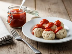 Pulpeciki z dorsza gotowane na parze z sosem pomidorowym