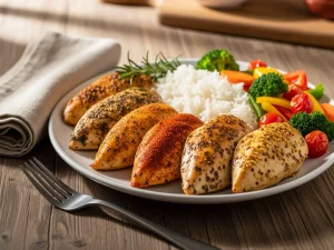 Pieczone piersi z kurczaka w pięciu smakach z ryżem i warzywami