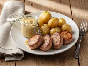 Polędwiczki wieprzowe z sosem musztardowym i ziemniakami