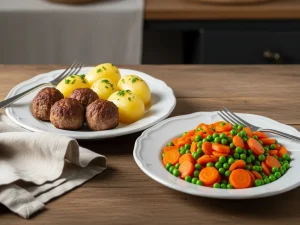 Pulpety z ziemniakami; Marchewka z groszkiem na ciepło
