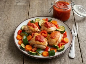 Zapiekany kurczak z warzywami w sosie pomidorowym