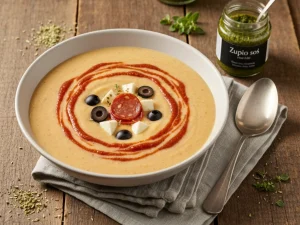 Zupa jarzynowa, kurczak i warzywne tagliatelle