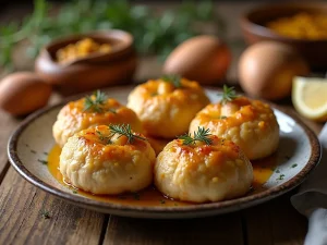 Zupa ziemniaczana z jajkami i rumienionymi pieczarkami
