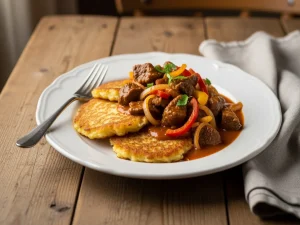 Placki kukurydziane z konfiturą paprykową i kremem z awokado